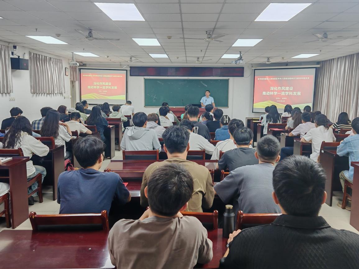 党课以《深化作风建设,推动林学一流学科发展》为主题,系统解读了中央八项规定、深刻解析了其精神实质,并结合高校实际重点剖析了科研经费违规使用、学术活动隐形变异、师生关系异化等突出问题。要求教师党员要做到“三带头”,即带头规范学术行为、简化科研接待、帮扶困难学生,学生党员要做到“三拒绝”,即拒绝学术不端、课题经费滥用、师生关系功利化。