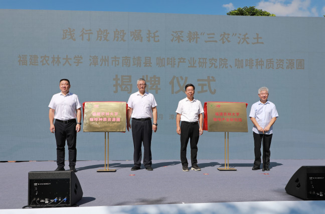 随后,赖海榕、陈跃鸿、唐振鹏、李志勇共同为“咖啡产业研究院”和“咖啡种质资源圃”揭牌。这两个平台的建成,将为南靖咖啡产业提供坚实的科技支撑和种源保障。