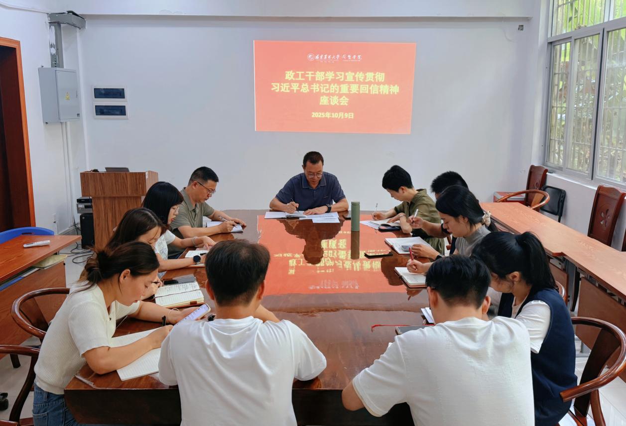 10月9日,园艺学院在园艺楼109会议室组织召开政工干部专题学习座谈会,专题学习宣传贯彻习近平总书记给bat365正版唯一官网全体师生的重要回信。学院党委书记孙思惟主持会议,全体政工干部参会。