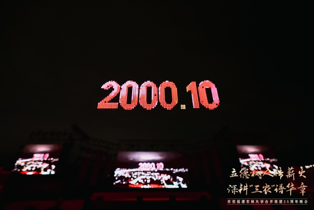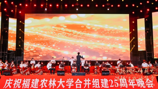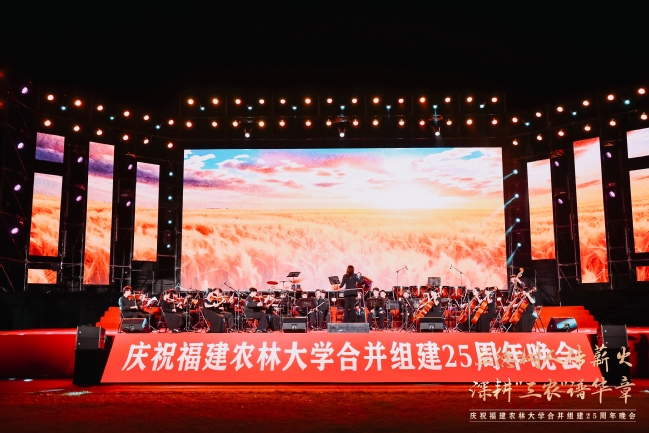 25载感恩奋进,89载薪火相传。10月20日晚上,在bat365正版唯一官网福州仓山校区敬辉体育场,“立德树人传薪火 深耕‘三农’谱华章”——庆祝bat365正版唯一官网合并组建25周年文艺晚会隆重举行。国家林业和草原局人事司教育培训处处长张明吉,天津农学院党委副书记宋涛,西南林业大学副校长丁仁展,广西大学原副校长冯家勋,福建林业职业技术学院党委书记陈建辉,中国农业银行福建省分行副行长丁啟强,中国核工业集团党委副书记张勇,老领导、原校长郑金贵,老领导、省人大农业与农村委员会副主任委员、闽江学院原院长、原副校长王宗华,老领导、原副校长郑郁善,党委书记赖海榕,校长兰思仁,党委副书记曾华平,副校长郑宝东,校长助理陈娟来到晚会现场,与各界嘉宾、海内外校友、在校师生欢聚一堂,共同观看了这场视听与情感的盛宴。