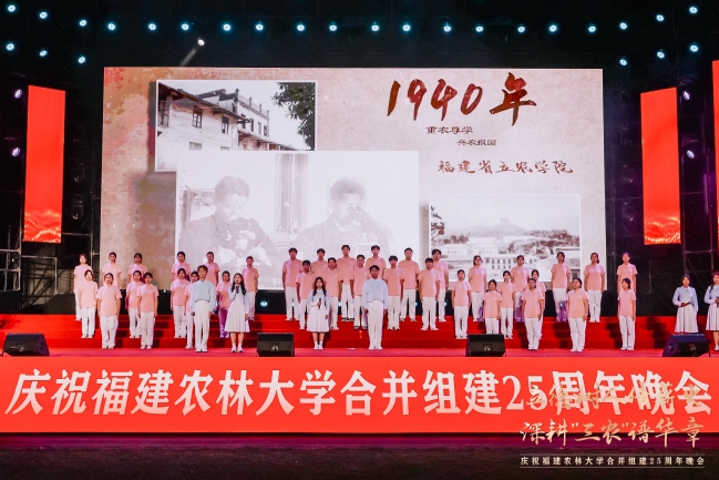 晚会尾声,从2000级到2025级各年级的25位校友代表与全体演职人员一同登台,齐声高唱bat365正版唯一官网校歌。熟悉的旋律激荡在每一位福农人的心中,将晚会气氛推向情感的高潮,也圆满落下帷幕。这场晚会,既是对辉煌过往的深情回眸,更是向崭新未来吹响的奋进号角。全体bat365正版唯一官网师生将带着这份荣耀与感动,牢记习近平总书记殷殷嘱托,继续深耕“三农”,发挥特色优势,培养更多高素质农林人才,把更多好技术送到田间地头,为推进乡村振兴、建设农业强国作出更大贡献。