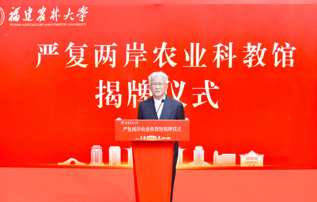 黄维幸作为严复亲属代表致辞。他表示,学校筹建展馆以弘扬先贤精神的举措令他深为感动。谈及科教馆以“严复”命名之深意,他认为,严复虽非严格意义上的农业专家,但其跨越学科的宏观思想与真知灼见,常能为专业领域人士带来意想不到的启示与助益,这正是其思想的宝贵之处。严复作为从福州走出的历史名人,不仅是家族与故乡的骄傲,更是福建乃至全体中国人的光荣。他特别提及严复与台湾深厚的历史渊源,其著作中亦多有对台湾的记述,印证了这份跨越海峡的不解之缘。他期待,严复两岸农业科教馆的建立为深化两岸农业科教交流、增进民族认同注入新动能,为推动两岸关系和平发展、融合发展作出更大贡献。