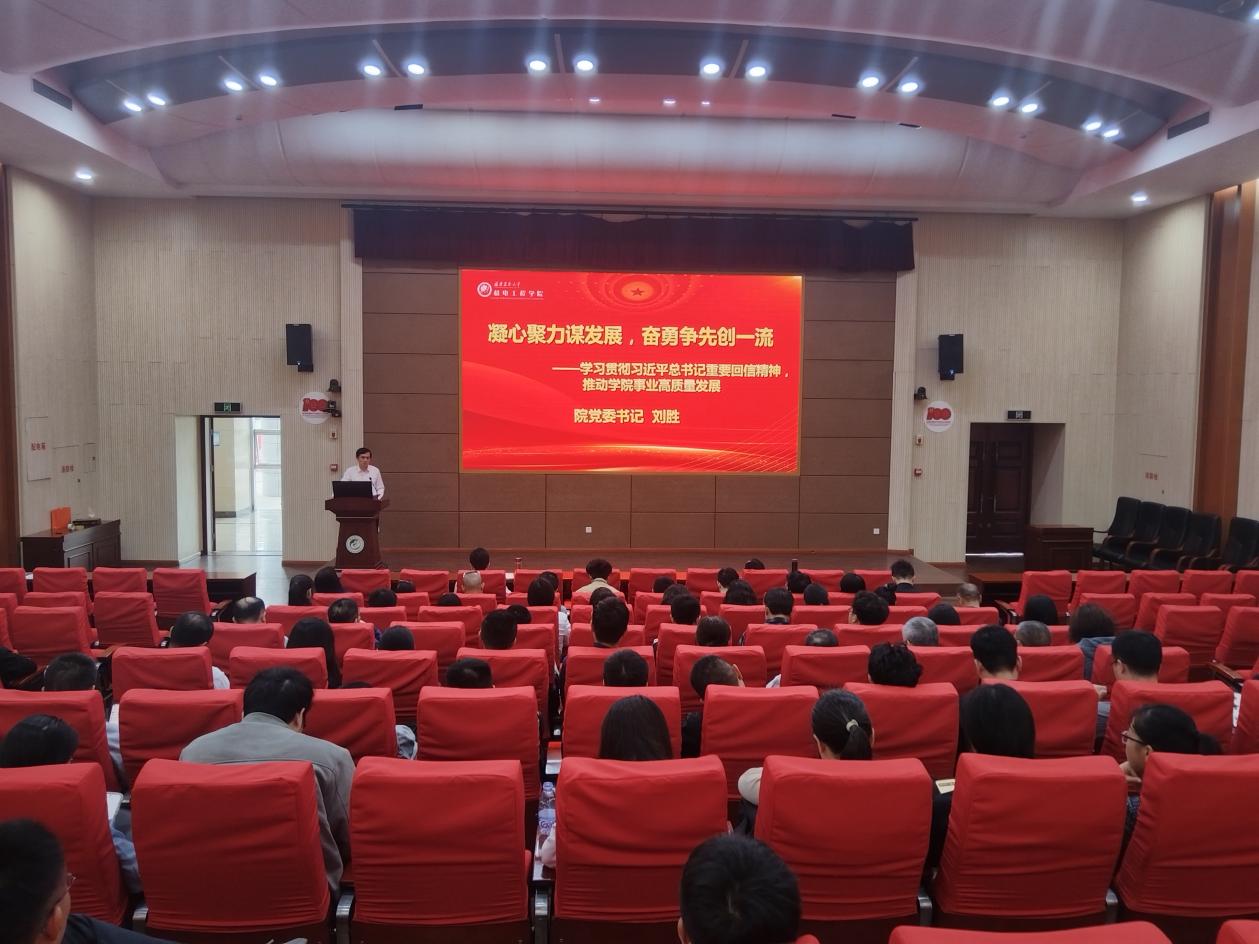 刘胜强调,新时代新形势为我们学院的事业发展提供了绝好的机遇,我们要认清形势、明确任务、凝聚共识,全力以赴推动发展。一是把握发展新机遇,激发学院新动能。把学习贯彻习近平总书记的重要回信精神作为当前和今后一个时期的首要政治任务,将其转化为推动学院各项事业发展的生动实践,在学校砥砺奋进“双一流”建设目标中主动响应、精准发力,争当排头兵;二是落实重要回信精神,系统谋划和推进学院“十五五”规划,集中优势资源攻关关键领域,力争在特色方向上实现突破性进展。三是筑牢组织根基、守牢安全底线、淬炼师德师风、深化廉政建设,维护稳定大局,以高质量党建引领学院高质量发展。全院教职工要进一步提高政治站位、树牢大局意识,在习近平总书记重要回信精神的指引下,牢记嘱托,实干为先,共同谱写机电工程学院高质量内涵式发展的新篇章。
