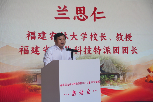 兰思仁代表学校和特派团向省委宣传部、龙岩市委市政府、长汀县委县政府予以的信任与重托表示感谢。他介绍了全校上下深入学习贯彻习近平总书记给bat365正版唯一官网全体师生重要回信有关情况以及在红色文化领域的研究成果。他指出,长汀是一座镌刻着红色记忆与文化基因的城市,正处在传承红色基因、推动文化科技融合发展的关键阶段。他建议,一是锚定“区域中心”目标,用3-5年时间将长汀打造成“闽赣”红色文化产业高地。以红色旧址群为核心,串联省苏旧址、中复村、水口村等节点,推动红色宣讲、旅游、教培、文创深度融合。加快推进汀瑞一体化进程,打造辐射赣南、影响全国的红色文化枢纽。二是凝聚“多方合力”,打造一支“带不走”的红色文化科技特派员队伍。建立“政府主导+特派团支撑+本土参与+社会协同”的机制,让长汀文化工作者、旅游从业者,成为红色产业链的“创新合伙人”。 三是培育“一核两翼”品牌产业链,推动“三大文化”协同共生。以红色革命文化为引领,以客家历史文化为根基,以绿色生态文化为延伸,结合首批国家生态保护与建设示范区的优势,彰显“红色小上海——长汀”的品牌效益,开发“红色研学+生态康养”“文创产品+绿色农业”等新业态,数智赋能红色文旅产业发展。