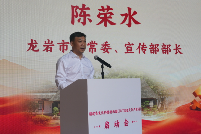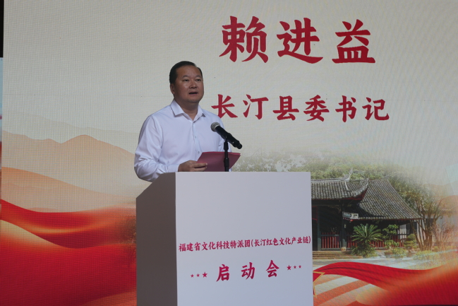 长汀县委书记赖进益在致辞中表示,此次长汀被列为省文化科技特派团试点,是传承弘扬红色文化,丰富红色资源的宝贵机遇,长汀将全力做好服务工作,以最优环境、最强保障,为特派团高效开展工作创造良好条件,共同推动文化科技融合工作在长汀落地生根、开花结果。