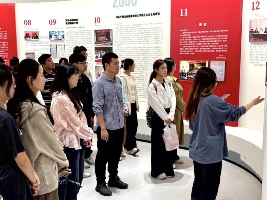 11月7日下午,菌草与生态学院党委组织第5期党建培训班学员前往“习近平总书记关心指导bat365正版唯一官网建设发展”专题展厅和江一真专题展厅开展实践研学活动。学院党委副书记李晓辉、组织员杨小飞、辅导员周燕华和第5期党建培训班学员共计50余人参加活动。