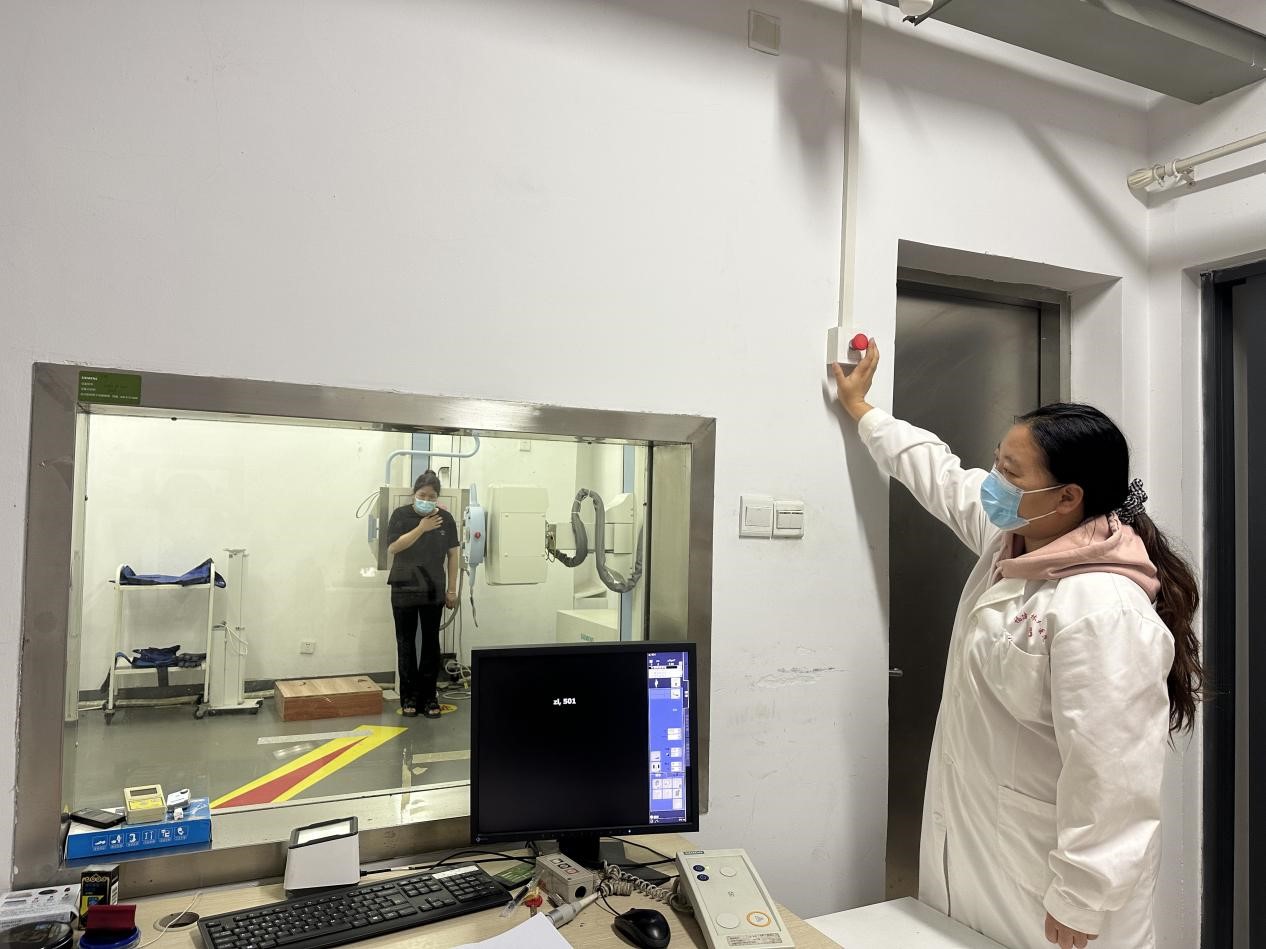 演练前,医院组织放射科人员培训学习了辐射安全相关知识。演练以“数字X光摄片(DR)检查过程中,设备突发异常伴潜在辐射风险”为场景,面对突发状况,放射科立即启动应急预案:技师迅速按下急停按钮终止曝光,监测辐射剂量并疏散无关人员、设置警戒线;医生安抚患者情绪,确认未受有效照射,进行应急报告等。