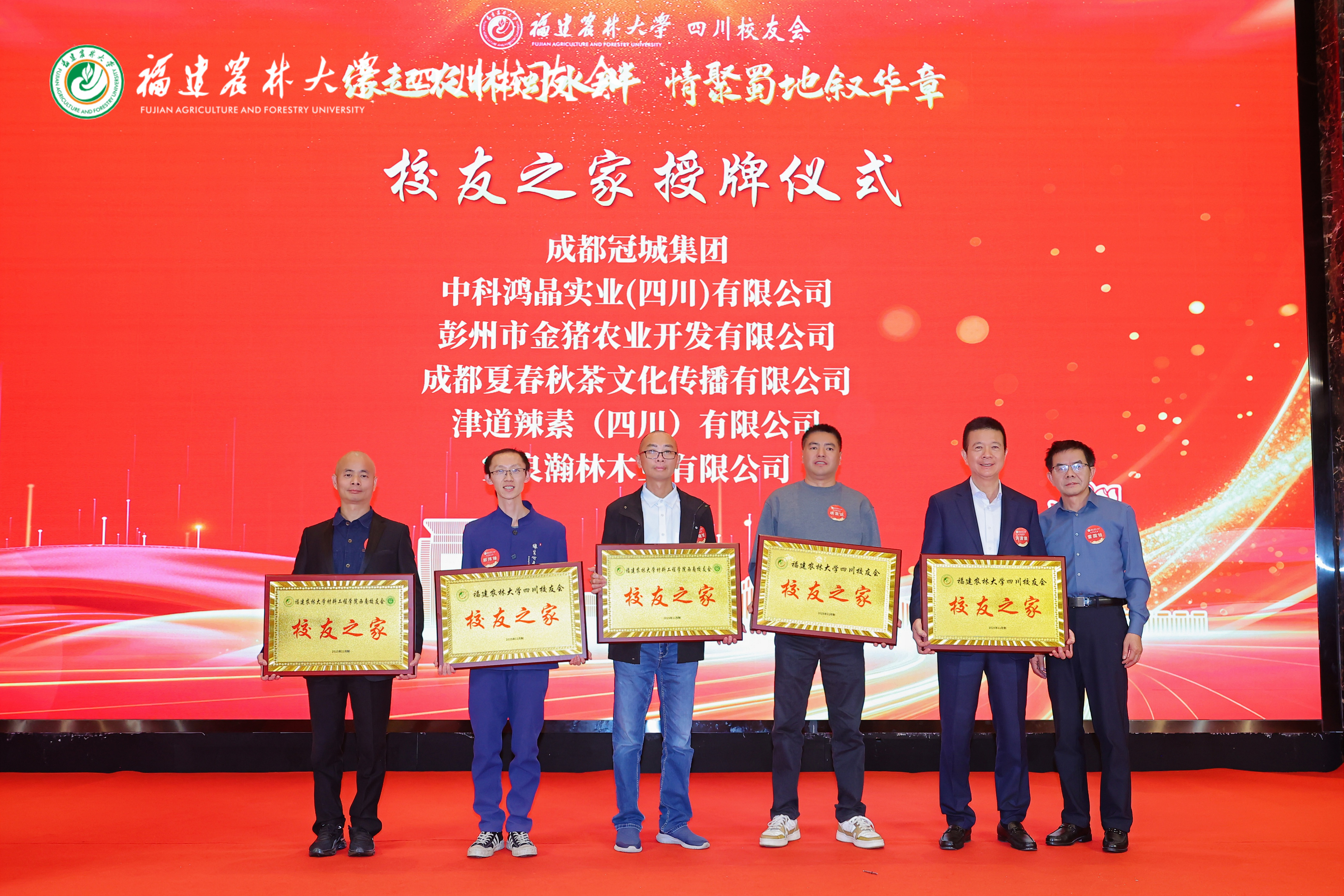 林庆藩、王宗华、雷国铨代表学校分别向四川校友会授旗、校友会骨干成员授牌,并为四川校友之家揭牌。连文、陈奶荣分别为蜂学学院四川校友会、材料工程学院西南校友会揭牌。