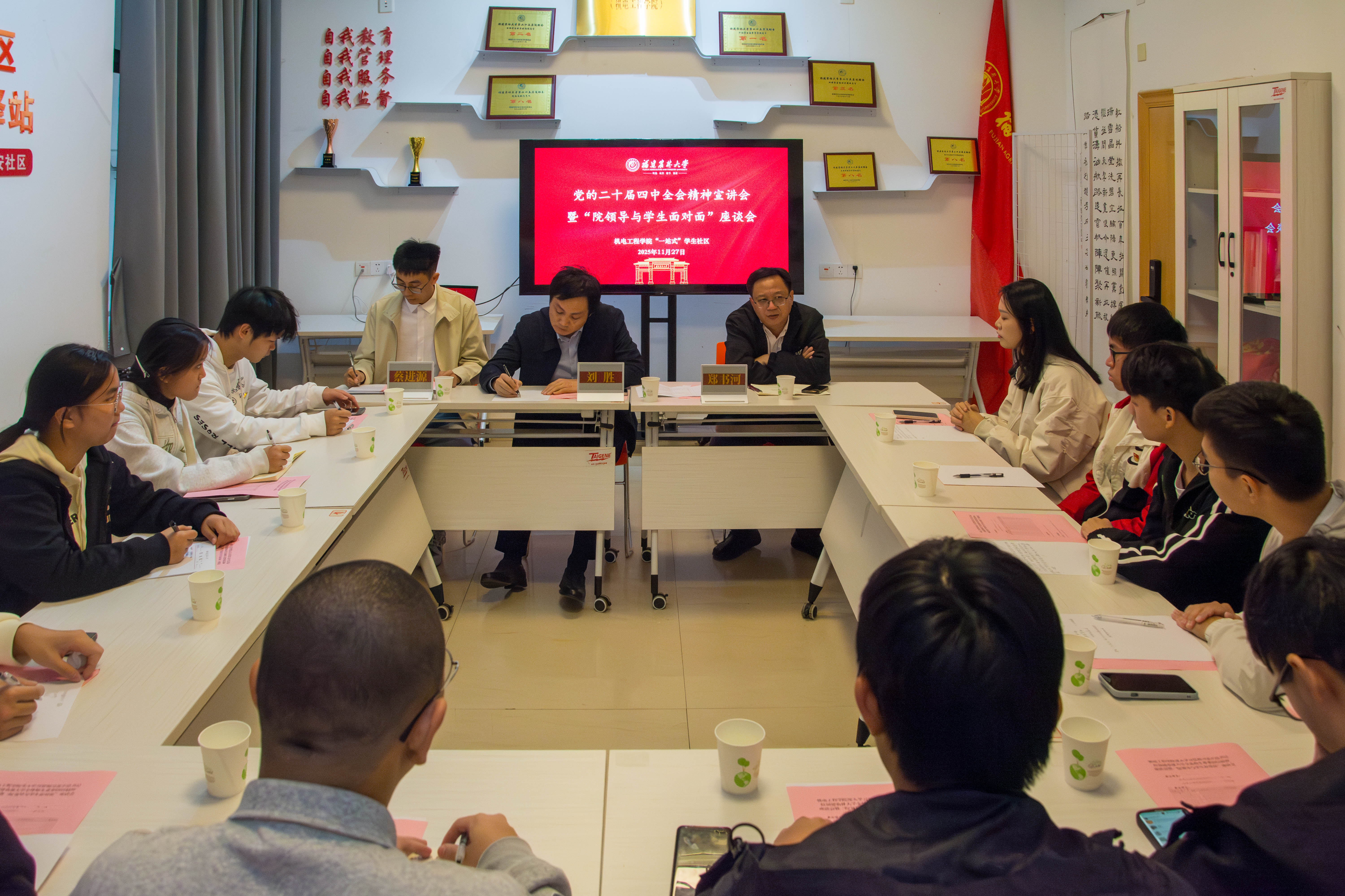 11月27日下午,机电工程学院在“一站式”学生顽强社区鹿鸣苑3号楼党团活动室举办深入学习贯彻习近平总书记给bat365正版唯一官网全体师生重要回信精神暨“院领导与学生面对面”座谈会。机电工程学院党委书记刘胜、副院长郑书河、学院研究生和本科生各年级专业学生代表、辅导员代表等,共同参加了座谈会。