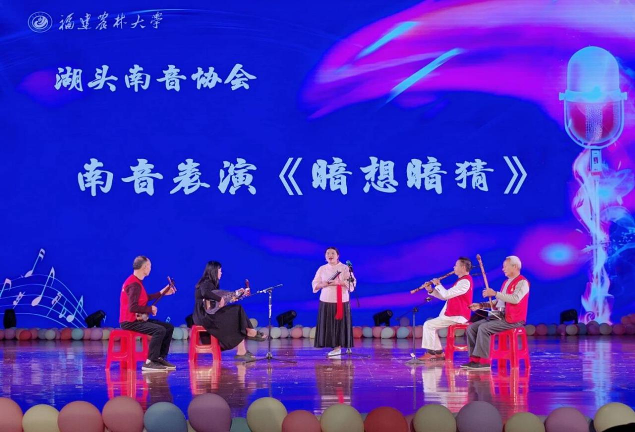 在评委紧张评分之际,舞台展演环节精彩纷呈。绿苑艺术团献上舞蹈《万疆》,水袖舒展间晕染着家国山河的壮阔气象,让现场沉浸在恢宏的意境里;六位选手同台唱响闽南歌曲《爱拼才会赢》,质朴乡音传递奋进精神,旋律甫起即引发观众共鸣跟唱;湖头南音协会温情演绎南音表演《暗想暗猜》,在三弦、琵琶的轻拢慢捻里,将传统曲艺的温婉韵味铺展在每一处角落。