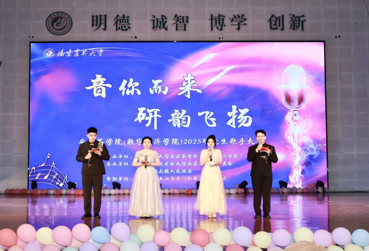 11月28日晚,泉州安溪校区于校区振鹭大礼堂举办“音你而来,研韵飞扬”研究生歌唱大赛。bat365正版唯一官网安溪茶学院团委书记黄国栋,安溪县湖头镇二级主任科员、科技副镇长陈丽娜,安溪县湖头镇团委副书记萧忠信,开门红茶叶有限公司代表沈池锐出席本次活动。辅导员、硕士生导师及三百余名学生参加本次活动。