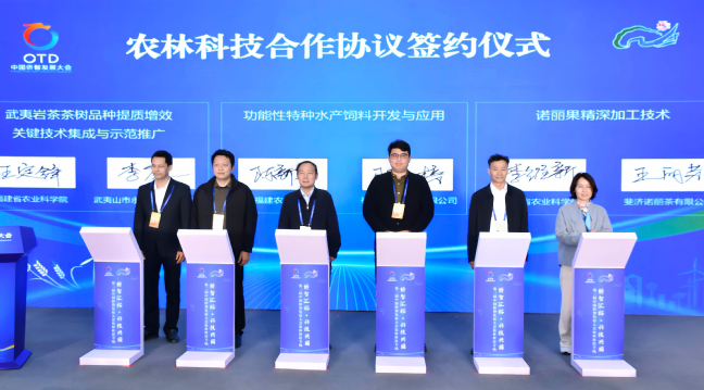 在科技赋能产业发展环节,来自海内外的科技人才和高新企业代表带来了农林科技产业发展的成功应用案例。日本亚桥株式会社社长张颖、老挝红龙榴莲产业集团常务副总裁肖远兴,分别介绍了纳米气泡技术应用、红龙榴莲产业园建设等案例;武夷山永鹏茶业总经理李康分享了科企合力创新开辟岩茶新品类的成功经验;厦门国际银行福州分行副行长林昱则推介了华侨金融及农业金融服务,为农林产业发展提供金融支持解决方案。
