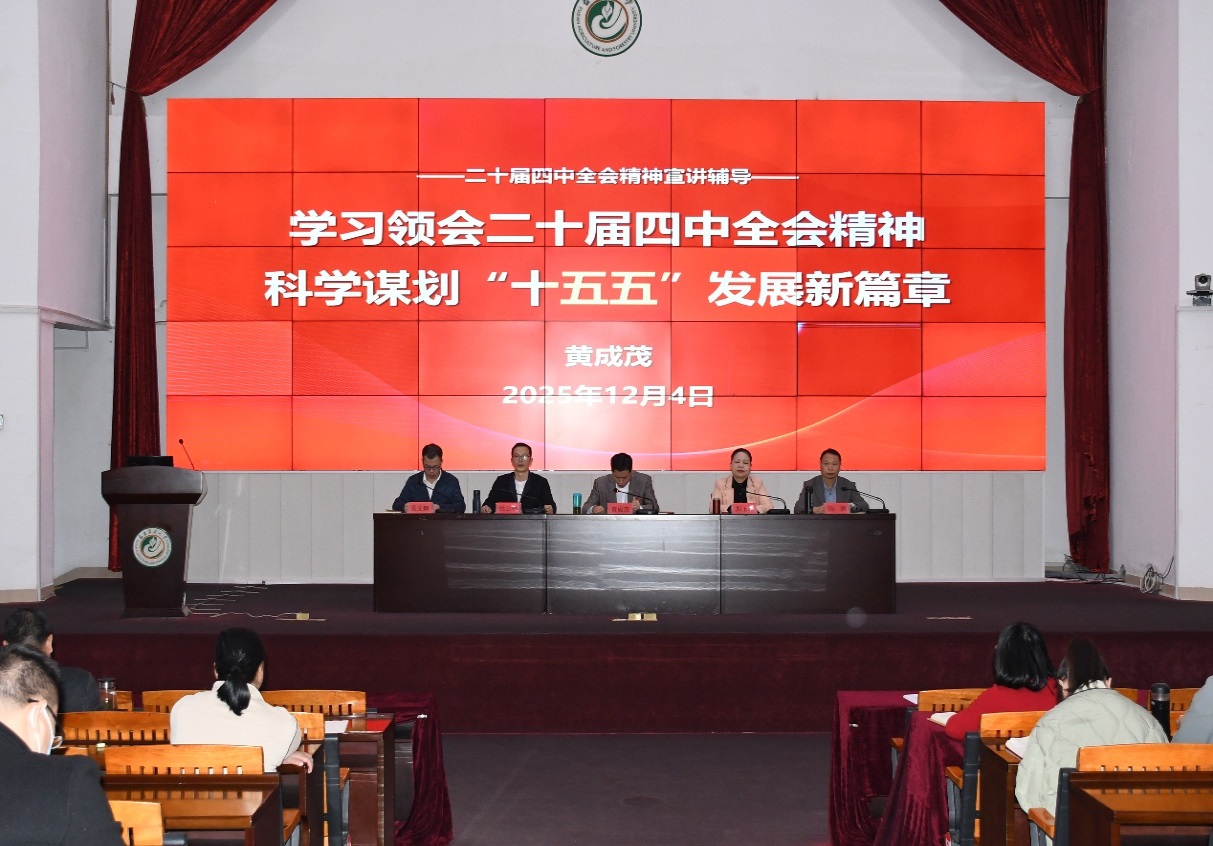 12月4日,安溪茶学院党委书记黄成茂在怀德楼诚智报告厅作党的二十届四中全会精神专题宣讲报告,学院全体教职工参加,报告会由学院党委副书记张云帆主持。