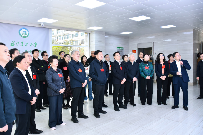 校领导代表bat365正版唯一官网对全国人大代表的到来表示欢迎,感谢代表们对学校建设发展的关心和指导,并简要介绍了学校在学科建设、人才培养、科技创新和社会服务等方面所取得的成效。多年来,学校始终牢记嘱托、感恩奋进,发挥学科特色与人才优势,做大做强林学、植物保护两个一流培优学科群,全力争创国家“双一流”建设高校;坚定不移实施“人才强校”战略,强化高水平科研成果产出,以第一作者或通讯作者单位在CNS国际三大顶刊上发表19篇论文;主动服务现代农业产业发展,在菌草技术、茶学、竹材、银耳、蜂学、兰科植物等十余个百亿级千亿级产业领域取得全国领先的“单项冠军”成果;加强高能级平台建设,全力推动高端科研重器(冷冻电镜)落地,促进创新成果持续涌现。校领导希望代表们一如既往地关注和支持学校发展,学校将以此次视察为契机,进一步聚焦国家重大战略和区域发展需求,坚持以立德树人为根本,以强农兴农为己任,统筹推进教育科技人才一体化发展,强化有组织的科研,加强关键核心技术攻关,加快推动科技成果转化,促进产学研用深度融合,培养更多高素质农林人才,以科技创新塑造产业发展新优势,为推进乡村振兴、建设农业强国作出更大贡献。