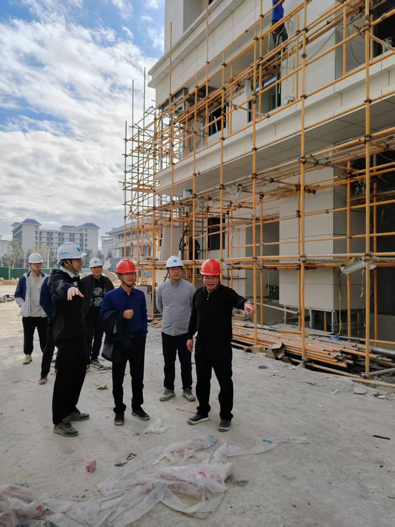 按照上级关于安全生产的最新要求和校园安全稳定会议精神,针对近期香港大埔宏福苑“11·26”特大火灾事故暴露出的建筑施工安全隐患,为深刻汲取事故教训,坚决遏制各类安全事故发生,12月9日-10日,基建处组织相关专业技术人员,深入福州大学城校区海峡两院(三期)食堂项目、福州仓山校区映辉楼外立面改造等在建工地一线,开展脚手架搭设及消防安全专项检查工作。