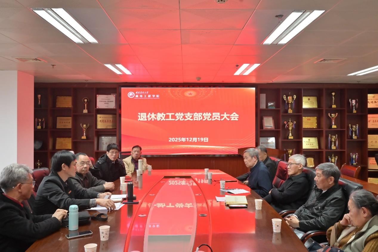 12月19日上午,机电工程学院退休教工党支部换届交接大会在福州大学城校区仁德楼718会议室召开。学院党委书记刘胜出席会议并做学习宣讲,会议由党支部书记何聪惠主持。