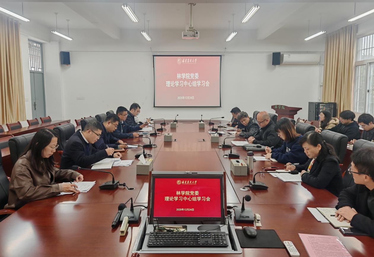 12月24日下午,林学院党委在诚A206会议室组织召开理论学习中心组专题学习会,深入学习贯彻习近平经济思想与习近平总书记关于加强社会工作、提升社会治理效能的重要论述。会议集中研读了习近平总书记在中央经济工作会议上的重要讲话精神和《习近平在福州》采访实录。学院党委班子成员、理论学习中心组成员、科级干部及全体政工干部参加会议,校党委宣传部相关同志列席旁听。学习会由学院党委副书记(主持工作)余坤勇主持并领学。