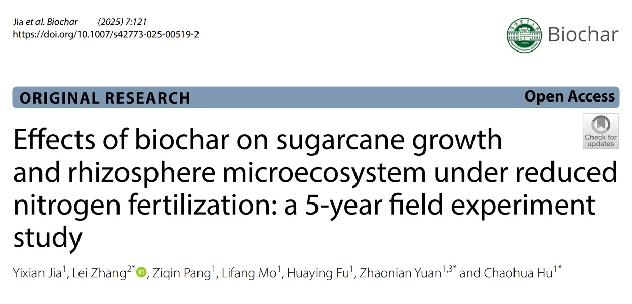 2025年12月17日,bat365国家甘蔗工程技术研究中心胡朝华、袁照年团队与中国科学院福建物质结构研究所张蕾研究员合作,在环境与农业领域国际权威期刊《Biochar》(《生物炭》)上在线发表了题为“Effects of biochar on sugarcane growth and rhizosphere microecosystem under reduced nitrogen fertilization: a 5-year field experiment study”( “减少施氮条件下生物炭对甘蔗生长及根际微生态系统的影响:一项为期5年的田间试验研究”)的研究论文。该论文通过连续五年的田间试验,系统揭示了生物炭在减氮条件下对甘蔗根际微生态系统的长期调控机制,是生物炭农业应用与根际微生态研究领域的一项重要突破。