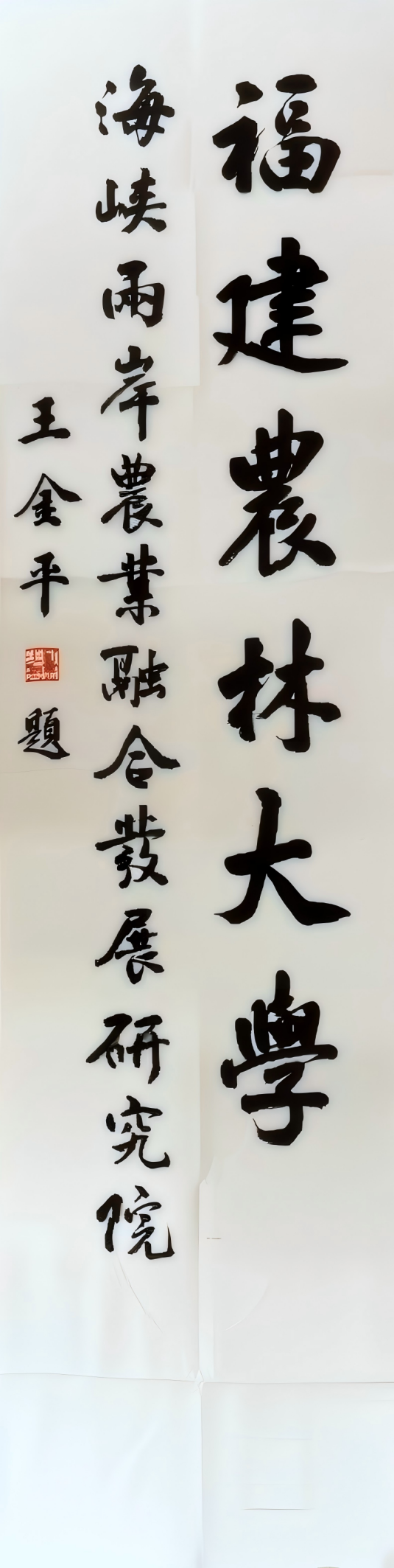 bat365正版唯一官网海峡两岸农业融合发展研究院是聚焦两岸农业科技、产业协作的专业研究机构,同时也是全国台湾同胞投资企业联谊会唯一支持共建的涉农智库平台,长期致力于搭建两岸农业领域交流平台。此次王金平先生题写的院名以行书书就,笔势舒展大气,既展现了中华传统文化的艺术韵味,也寄托了对两岸农业深度融合、协同发展的美好愿景。