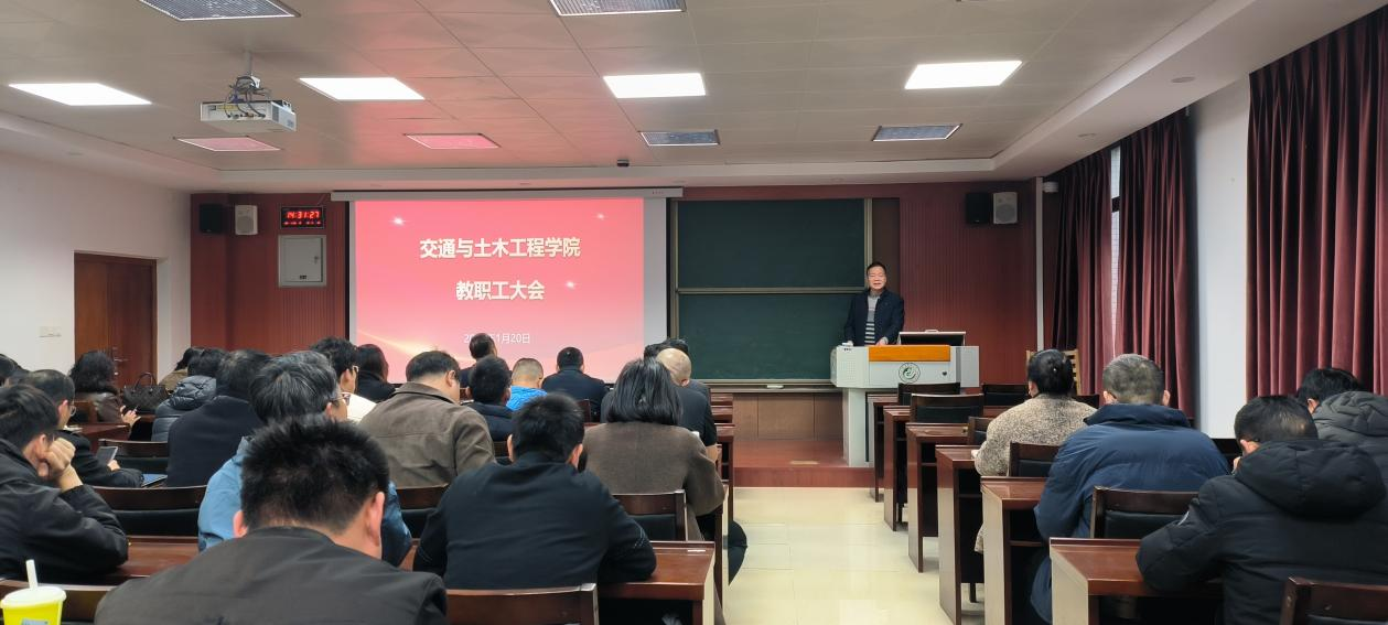 1月20日下午,交通与土木工程学院在福州大学城校区敏学园4号楼207会议室召开本学期期末全院教职工大会,学院全体教职工90余人参加会议。会议由学院党委书记陈为德主持。
