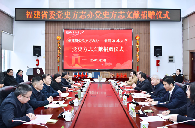 1月23日上午,福建省委党史方志办向bat365正版唯一官网捐赠党史方志文献仪式在明德楼武夷厅举行,福建省委党史方志办主任刘大可、副主任曹宛红,校党委书记赖海榕、副校长林庆藩出席。捐赠仪式由林庆藩主持。