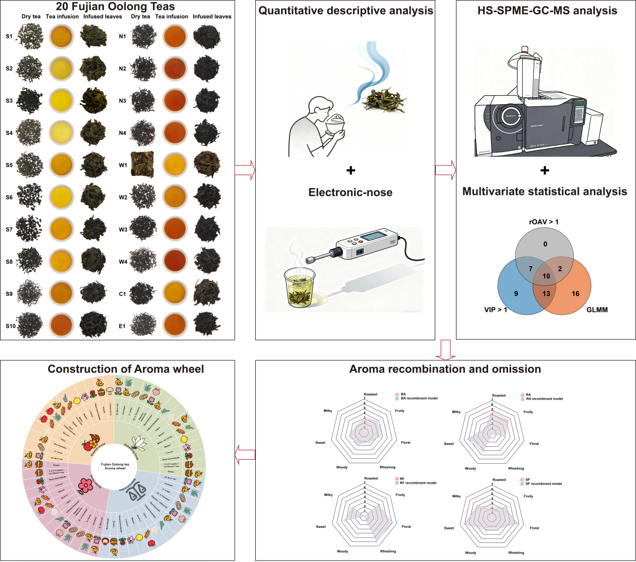该研究不仅揭示了福建乌龙茶香气的化学本质,还为茶叶分级、产品开发和真伪鉴别提供了科学基础。未来,团队计划扩大样本范围,并结合加工过程动态分析,进一步阐明香气形成机制。