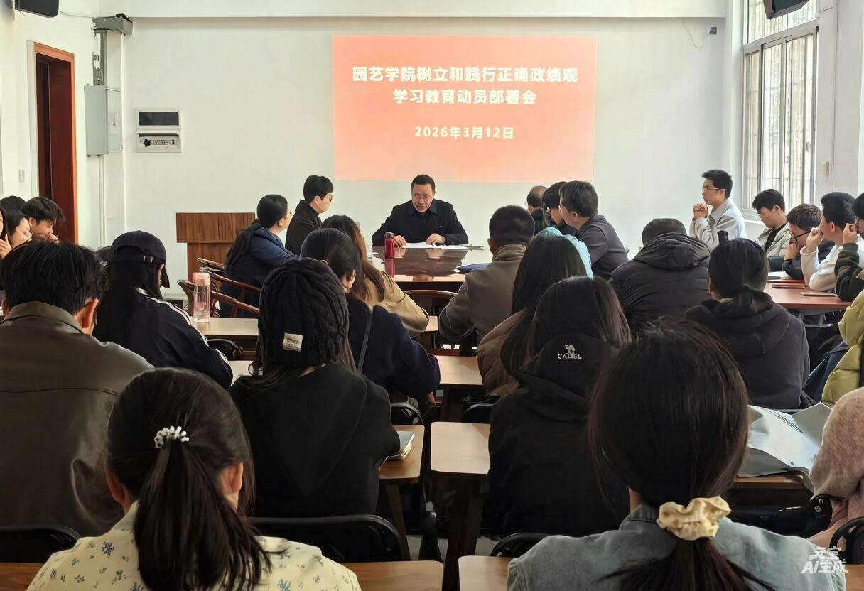 3月12日下午,园艺学院召开党委理论学习中心组(扩大)会议暨树立和践行正确政绩观学习教育动员部署会,深入学习贯彻习近平总书记关于树立和践行正确政绩观学习教育的重要讲话和重要指示批示精神,全面落实党中央、教育部党组、省委及学校党委相关部署要求,对学院开展树立和践行正确政绩观学习教育进行全面动员、系统部署。学院党委委员、纪委委员、全体师生党支部书记及支部委员参加会议,学院党委书记孙思惟主持领学并作动员部署讲话。