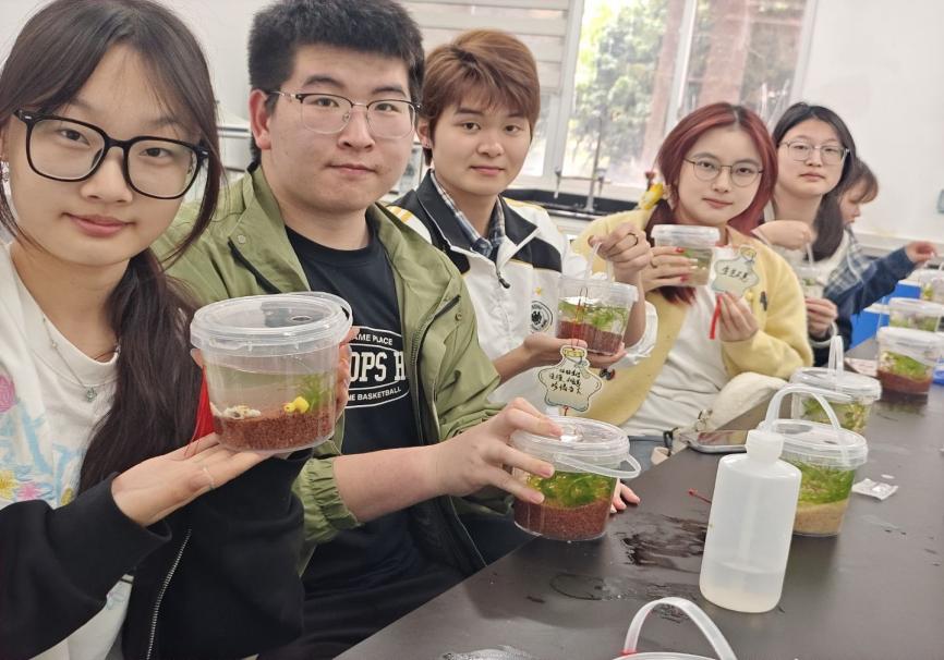 活动现场,少数民族学生代表与其他同学组成小组,在志愿者的细致指导下,有条不紊地开展底砂铺设、水草栽种、景观布置、注水定型等实操环节。过程中,大家分工明确、互帮互助,充分发挥想象力与创造力,将对海洋的热爱、对生态的敬畏融入每一处细节。动手实践的过程,不仅让同学们直观感受海洋生态的平衡之美、生命之韵,更帮助同学们进一步拓宽了视野、深化了专业认知,进一步坚定了立足专业、守护海洋的信念。