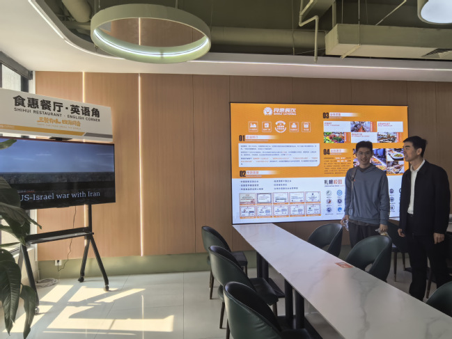 在子衿餐厅,林庆藩察看了三个食堂英语角建设与运行情况,对校区落实环境育人理念、浓厚校园文化氛围的做法表示肯定,要求利用好英语角空间,潜移默化提升学生英语综合素养。