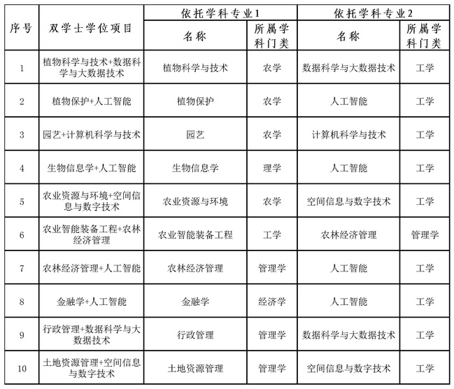 学校始终坚持以立德树人为根本,以强农兴农为己任,高起点谋划、高标准推进、高质量建设双学士学位项目。紧密结合习近平总书记给学校全体师生的重要回信精神,锚定“高素质农林人才”培养目标,紧密对接国家重大战略、福建省“四大经济”发展需求及乡村振兴战略对复合型人才的迫切需要,通过“人工智能+”“大数据+”赋能传统优势学科,推动农、理、工、经、管等多学科深度交叉融合,打破专业壁垒,着力构建特色鲜明、多元融合的人才培养新体系。