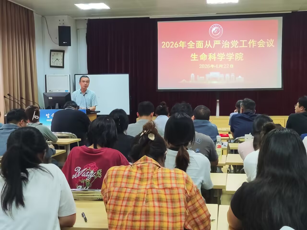 4月22日下午,生命科学学院党委召开2026年全面从严治党工作会议。学院党政领导班子、党委委员、纪委委员、科级干部、辅导员、党支部书记及纪检委员参加会议。会议由学院党委副书记刘强主持。