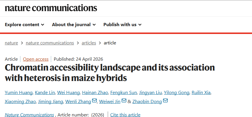 近日,《自然·通讯》Nature Communications上发表了题为“Chromatin accessibility landscape and its association with heterosis in maize hybrids”(玉米杂交种中染色质可及性特征与杂种优势之间的关系)的研究论文。该研究系统解析了玉米杂交过程中开放染色质的动态景观,揭示了染色质开放性非加性遗传驱动杂种优势形成的分子机制,并为玉米分子设计育种提供了重要的理论依据与关键遗传靶点。