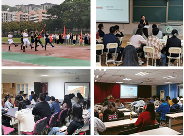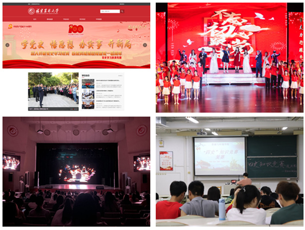 二、抓课内课外,聚焦覆盖全员深入学。将党史学习作为思政课教学的重要内容,强化思政课教师集体备课,全面融入思政课五门课程教育教学工作,自本学期起,在形势政策课中增加“四史”学习内容,推进建设党史选修课,推动构建思政课党史学习长效常态机制。立足“课程思政”教学设计工作坊,组织经验丰富的思政课教师为专业教师讲授党史教育等思政元素融入课堂教学方法,推动党史教育全面融入课堂教学。依托教师政治理论学习阵地,组织二级党委每月面向全体教职工开展1次党史学习宣讲活动;在青年学生中组织开展“学党史 铸信仰 勇担当”班团活动,围绕百年党史四个历史时期历史,每月组织班级开展形式多样活动;结合升国旗仪式,开展 “学党史 听党话 跟党走”国旗下的讲话;已累计举行各类学习活动1000余场,确保党史学习全员覆盖。