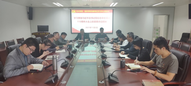 11月3日,艺术学院园林学院党委书记陈为德主持召开学院党委理论学习中心组扩大会议,传达学习习近平总书记在纪念辛亥革命110周年大会上的重要讲话精神,传达学习“时代楷模”孙丽美同志、“全省优秀共产党员”潘东升同志的先进事迹。学院理论学习中心组成员出席会议,科级干部、支部书记、政工干部列席会议。