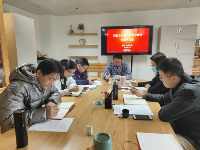 11月26日,材料工程学院在综合楼206召开党的十九届六中全会精神专题学习会。会议由学院党委副书记主持,全体政工干部参加并分享交流了学习体会。
