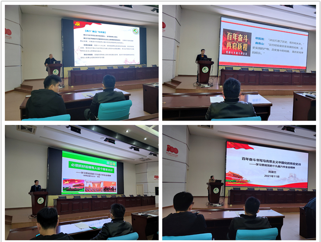 概论教研部刘淑兰老师从六中全会的相关概况、《决议》的主要内容、重大理论创新三个方面做了分享。她指出这次全会是在中国共产党的华诞的重要时刻,在“两个一百年”奋斗目标历史交汇关节点上召开的一次重要会议,并着重阐述了马克思主义中国化的三次飞跃。