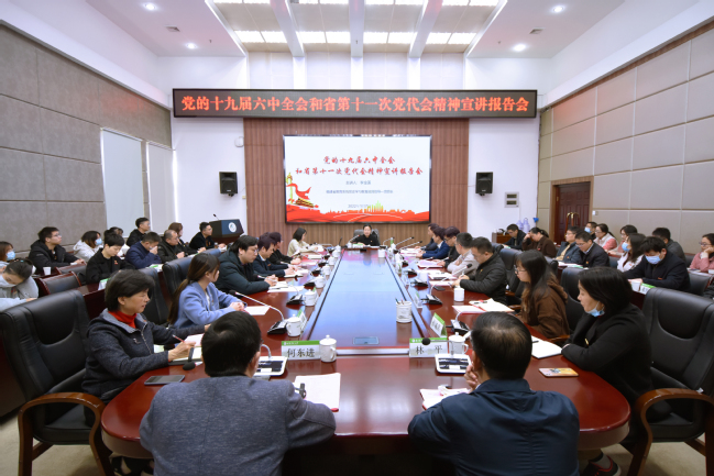 李金莲以《不忘昨天的苦难辉煌无愧今天的使命担当不负明天的伟大梦想——学习党的十九届六中全会和省第十一次党代会的主要精神》为题,从深刻认识召开党的十九届六中全会作出新的历史决议的重大意义、深刻认识党的百年奋斗的初心使命和重大成就、深刻认识中国特色社会主义新时代的历史性成就和历史性变革、深刻认识党百年奋斗的历史意义和历史经验走好新的赶考之路、省第十一次党代会的主要精神等5个方面对党的十九届六中全会和省第十一次党代会精神进行了系统阐释和深入解读。