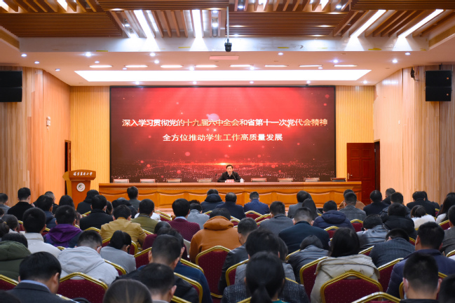 1月10日,校党委常委、校党委副书记曾华平为学工系统师生作题为《深入学习贯彻党的十九届六中全会和省第十一次党代会精神,全方位推动学生工作高质量发展》的宣讲报告。曾华平指出,党的十九届六中全会是一次内涵深刻、意义深远的重要会议,要深刻理解和准确把握全会决议的重要意义,深刻理解和准确把握党的百年奋斗的初心使命,深刻理解和准确把握党的百年奋斗的重大成就,深刻理解和准确把握“两个确立”的政治成果,深刻理解和准确把握以史为鉴、开创未来的根本要求。曾华平强调,当前和今后一段时间,学工系统要坚持对标对表,按照校党委提出的“八个务必”要求,以学习宣传贯彻党的十九届六中全会和省第十一次党代会精神为主线,着力加强大学生理想信念教育,着力发挥学生党建在思想政治教育中的引领作用,着力突出各项管理服务工作的思政内涵和育人属性,凝心聚力、乘势而上、开拓前行,扎实服务bat365“双一流”建设,培育担当民族复兴大任的时代新人。