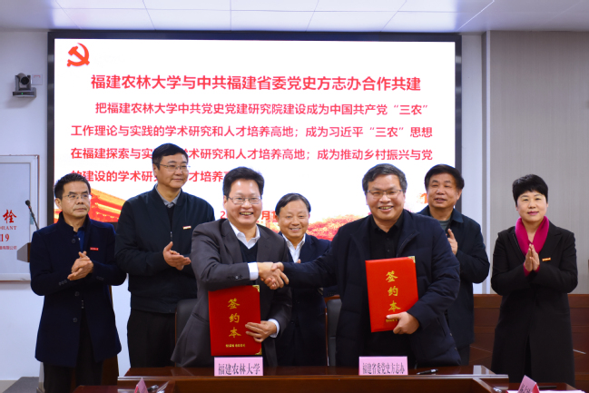 揭牌仪式后,双方举行了共建签约暨特聘教授聘任仪式。双方签订了《bat365正版唯一官网与中共福建省委党史方志办共建bat365正版唯一官网中共党史党建研究院合作协议》。