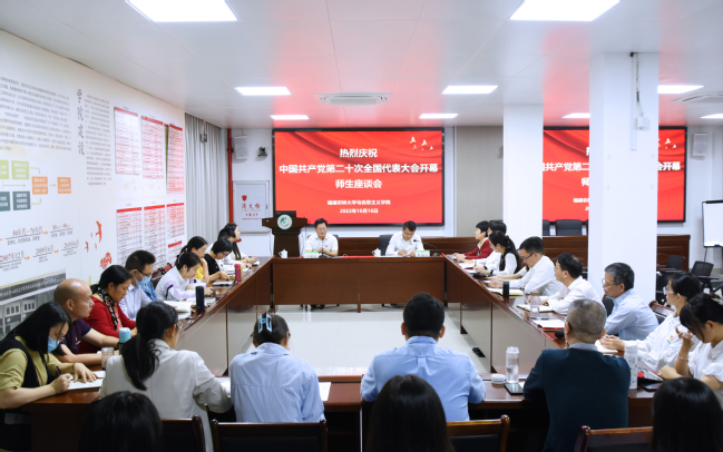 10月16日,在收听收看中国共产党第二十次全国代表大会直播后,校党委书记王建南来到马克思主义学院,与学院师生座谈交流,学习领会党的二十大报告精神。会议由校党委副书记、马克思主义学院党委书记柯瑞清主持。