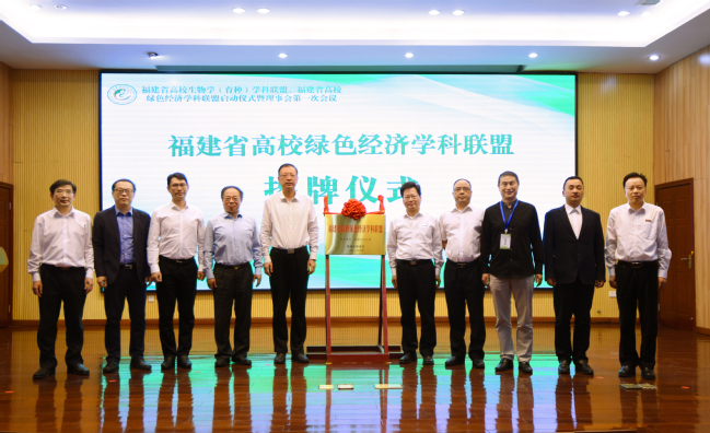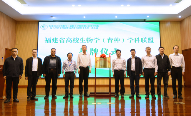 启动仪式上,与会领导为福建省高校生物学(育种)学科联盟、福建省高校绿色经济学科联盟分别揭牌。