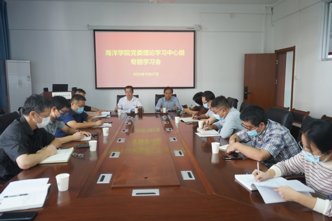 10月27日上午,海洋学院党委在学院会议室召开理论学习中心组专题学习研讨会。学院领导班子成员、党支部书记、科级干部、辅导员等参加。会议由学院党委书记黄毅军主持。