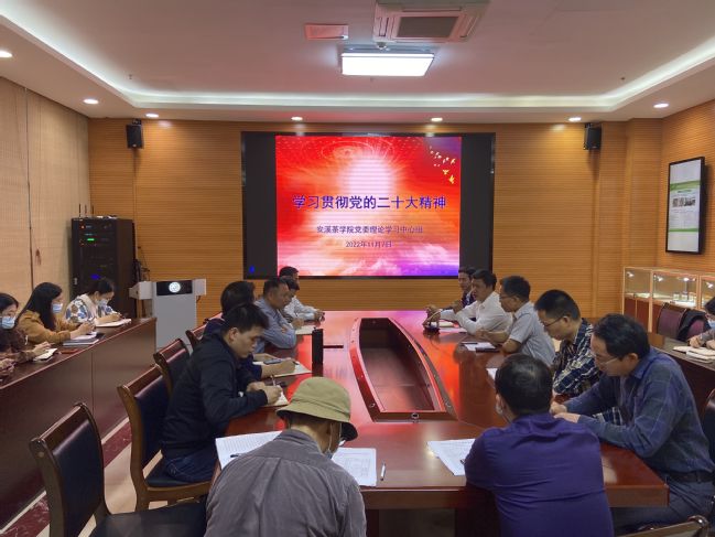 11月7日下午,安溪茶学院党委召开理论学习中心组扩大会议,专题学习贯彻党的二十大精神,学院党委书记连文主持会议,中心组成员、党支部书记、科级干部参加会议。