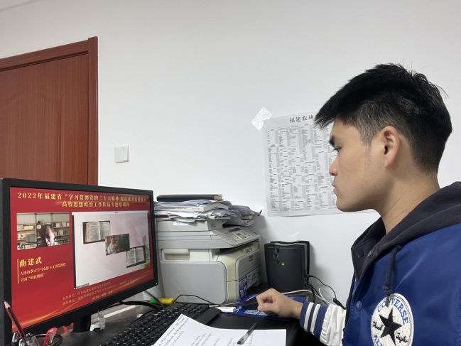 12月28日上午,2022年福建省“学习贯彻党的二十大精神 提高业务素质”高校思想政治工作队伍专题培训班线上开班,省教育工委副书记、教育厅党组成员林生发表开班讲话,全国“时代楷模”大连海事大学马克思主义学院曲建武教授作首场报告。bat365政工干部通过线下线上形式参加培训,在校办公政工干部通过线下集中收看,居家办公政工干部通过线上收看,共160多名政工干部参加了此次培训。