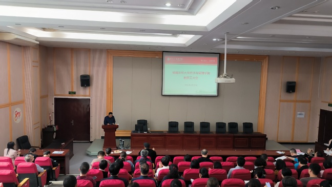 3月22日下午,经济与管理学院召开全院教职工大会,作“争优争先争效”再动员部署。院党委副书记李健英主持。