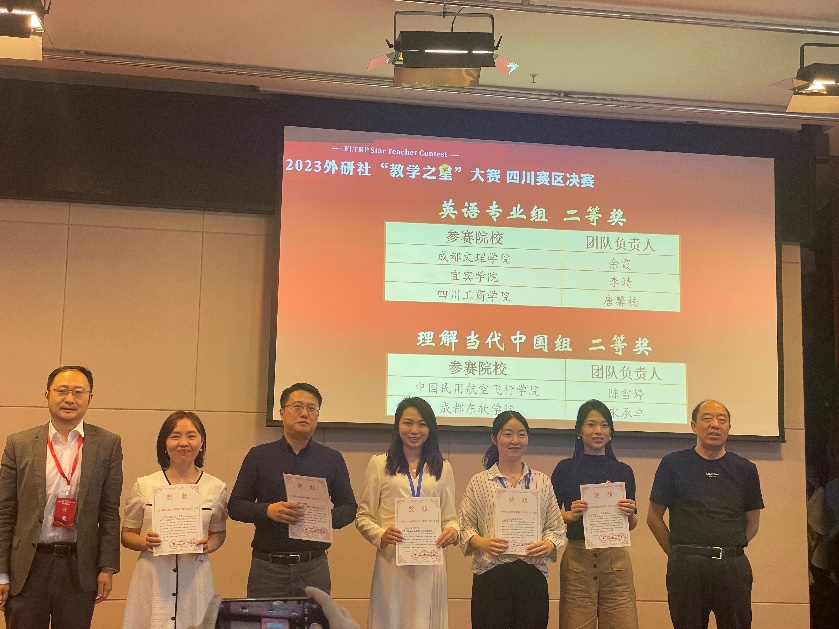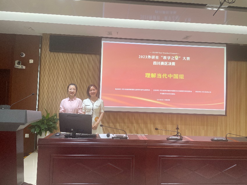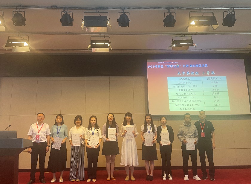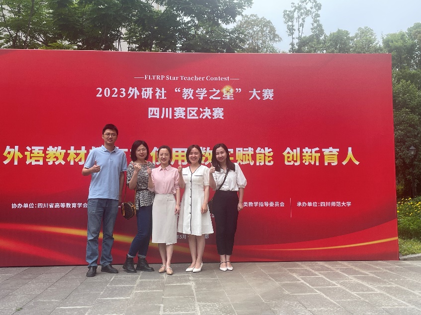 5月27日,2023年外研社“教学之星”大赛四川省决赛在四川师范大学举行,此次省级决赛一共有34支队伍参加,英语专业组、理解当代中国组18组,大学英语组16组。经过巅峰“论剑”,我校beat365正版唯一官方网站的两支教师团队,陈雪婷老师和李清老师(团队成员:周丹强玉、邹佳静、杨睿)凭借扎实的授课功底、出色的课程设计荣获本次比赛理解当代中国组二等奖,钟璇老师、王韵老师(团队成员:庄馨)也获得了大学英语组三等奖的优异成绩。