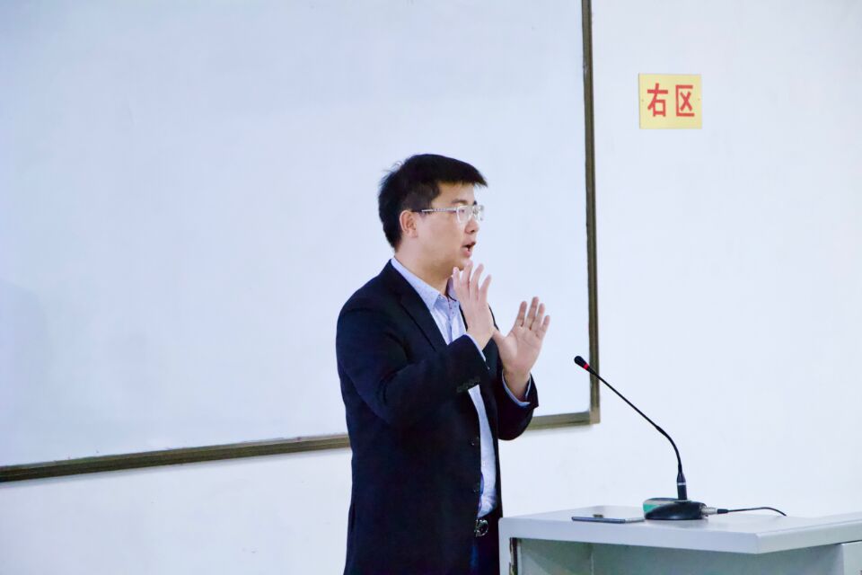 刘老师在讲座中根据自己口译实战经验,为同学们总结了一系列口译的技巧与方法,并和同学们分享了自己在口译中所遇到的趣事,其风趣的语言及优雅的谈吐吸引着在场的所有听众,为本场讲座营造了轻松愉快的氛围,练习短时间记忆的游戏更是将讲座带入了高潮。此外,刘老师还着重讲了听力中做笔记的方法。有同学觉得自己不做笔记时听力听得更明白,但其实是因为自己的听力水平还比较低。刘老师建议边看演讲边做笔记,第一次听时找出演讲者的演讲框架与演讲脉络,之后再听细节。侃侃而谈的同时,刘老师还给同学们播放了有趣的视频,以便让我们更直观地体会到口译任务的艰巨。讲座后的互动提问环节,同学们都踊跃积极发言,并提出自己在学习中的困惑和难点,刘老师也给同学们一一作出了耐心解答。