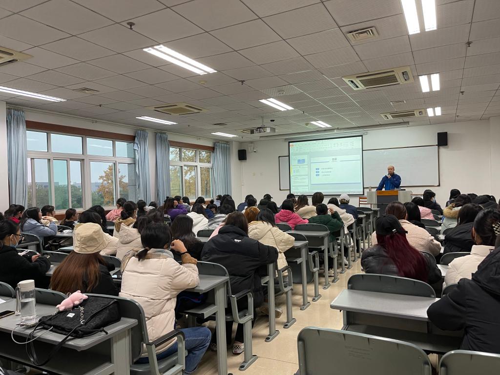 讲座开始前,辅导员叶奇奇对主讲人帅刚进行隆重介绍、并围绕当前疫情下国内就业形势研判、考研动态分析、考研政治重要性等方面对参会的近百名考研学生进行解读,以明确学生的职业规划,提升对考研的正确认识。