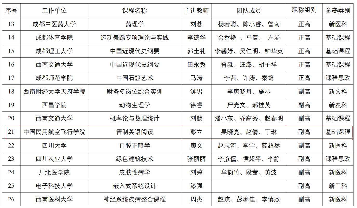 近日,四川省教育厅公布了《第三届四川省普通本科高校教师教学创新大赛获奖名单的通知》,beat365正版唯一官方网站彭立副教授教学团队领衔的管制英语阅读课程荣获副高组二等奖!教学团队还包括吴晓亮老师,赵倩老师以及丁琳老师。