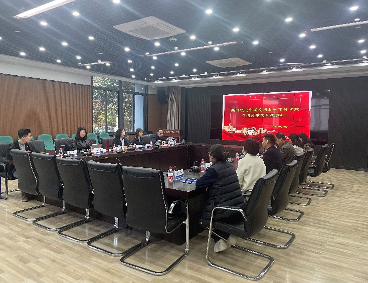 为进一步推进中飞院英语专业课程“三进”教育工作及公共英语课程思政的建设和开展,提升“三进”教育工作质量和课程思政教师队伍建设水平,深化外语专业建设工作,2023年3月9日,beat365正版唯一官方网站郑丽副院长带领学院英语系、翻译系、飞行基础英语教研室、民航英语教研室、乘务英语教研室多名科级干部以及骨干教师赴四川外国语大学(以下简称川外)进行交流。本次交流学习分为会议座谈和教学观摩两部分。